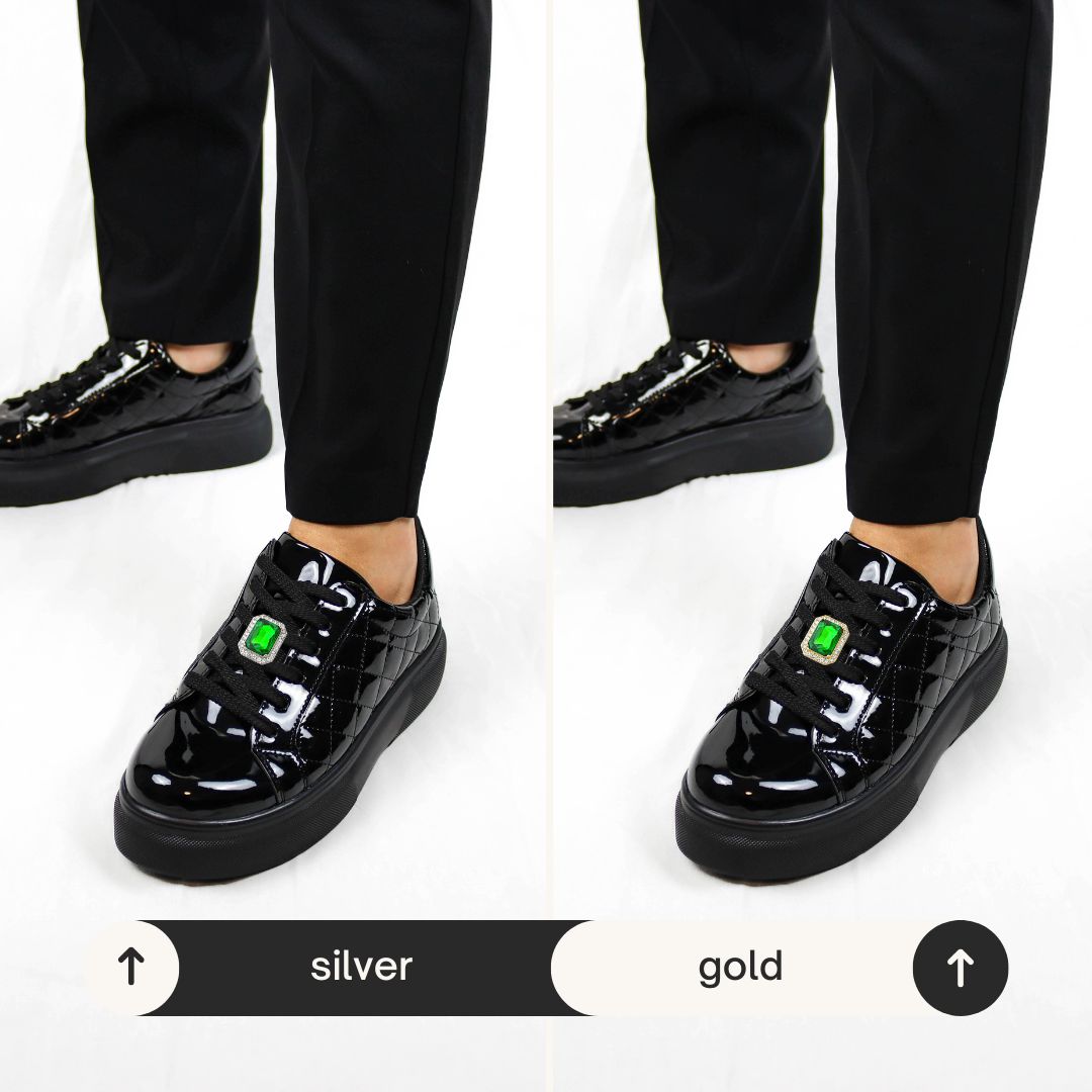 Emerald mit grünem Glasstein und weissen Kristallen